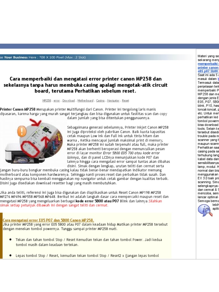 Thanks for visit Cara Memperbaiki Dakwat Printer - Cara mengatasi canon ip2770 blink 16x